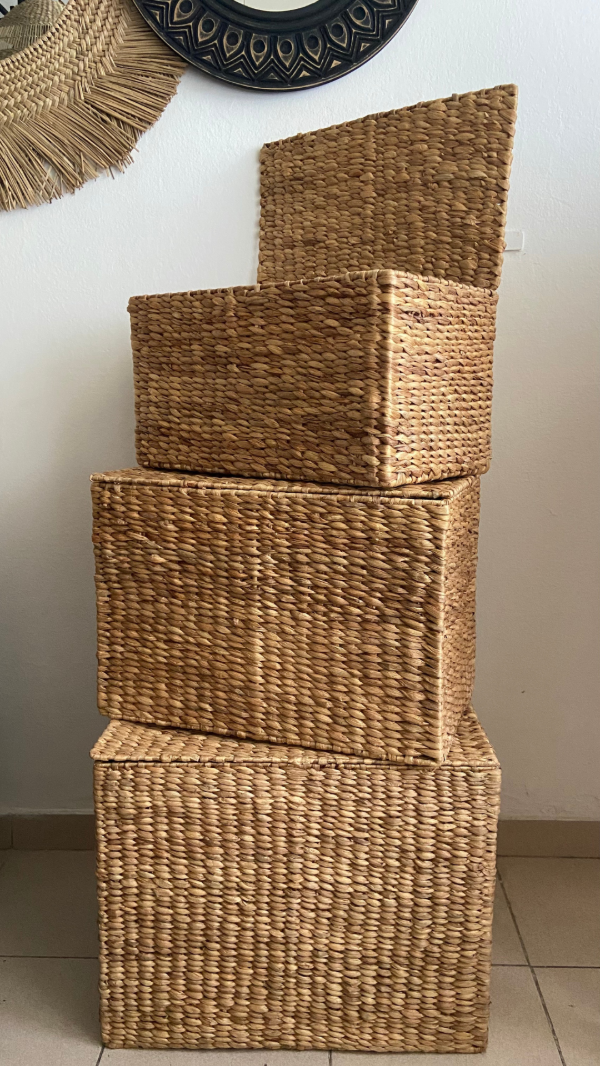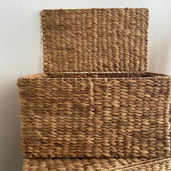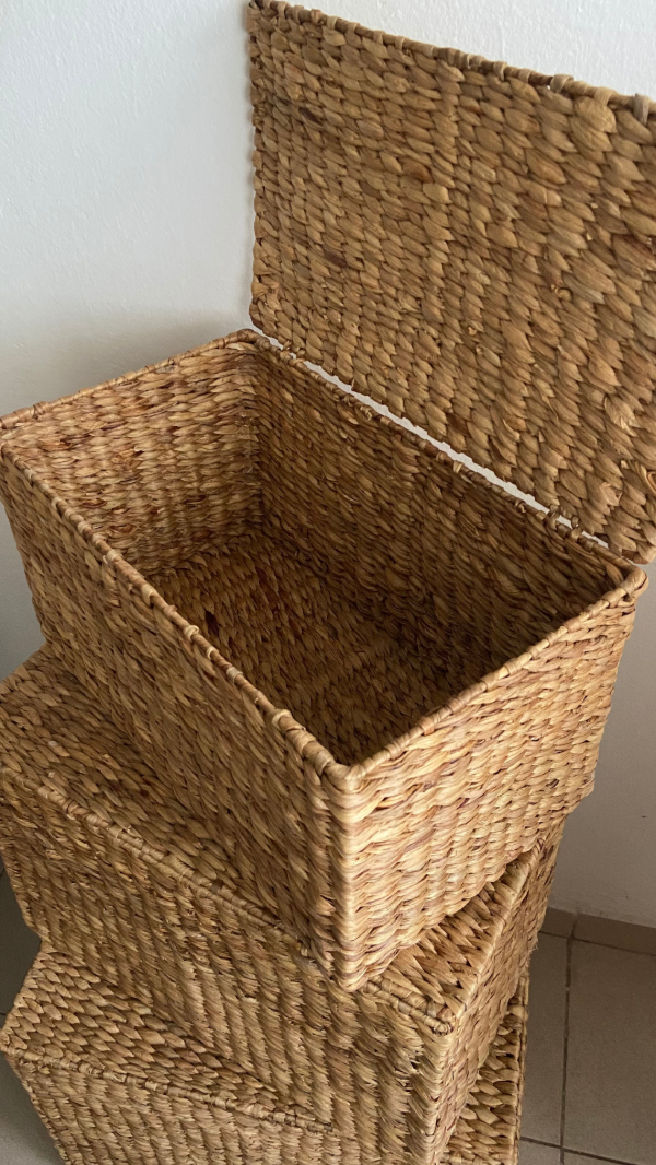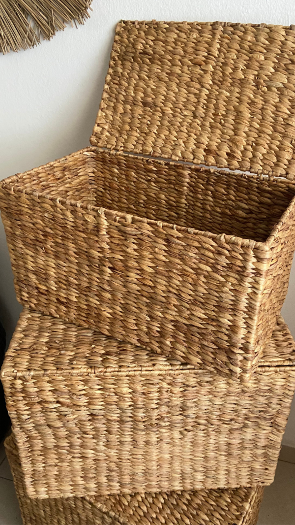 Baúles con tapa de fibras naturales, multiuso, quedan hermosos en cualquier habitación de la casa!